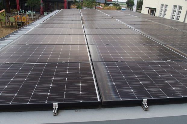 - Supermarktparkplatz: Wir planen a) genug Rangierflächen für Anlieferer ein und berücksichtigen b) die Dachflächen der Einkaufswagenboxen. Auch an überdachte Fahrrad- und Lastenrad-Parkplätze denken wir.