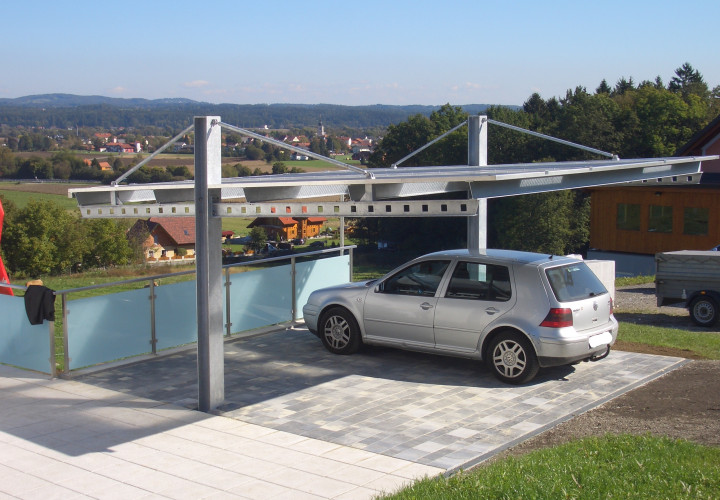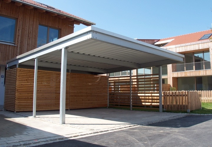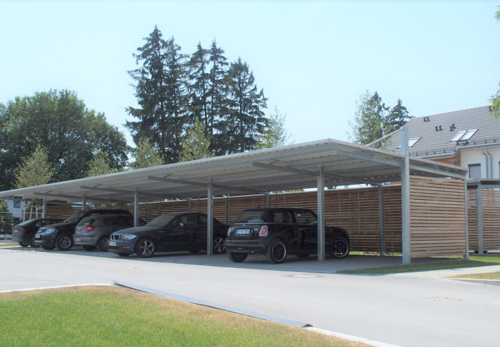 Ein Carport sorgt für Witterungsschutz, die Photovoltaikanlage auf dem Carport-Dach produziert Strom, und die Wallboxen können überschüssigen Sonnenstrom an die eingesteckten E-Autos weiterreichen. So nutzen Sie sonst ungenutzte Flächen zur Stromproduktion und verwerten ihn besonders wirtschaftlich. Wir berücksichtigen bei der Planung unter anderem die benötigten Dachlasten und die Ausrichtung des Dachs zur Sonne. Sogar die Kombination aus Gründach-Carport und PV-Anlage ist möglich, wodurch sich das lokale Mikroklima verbessern lässt.